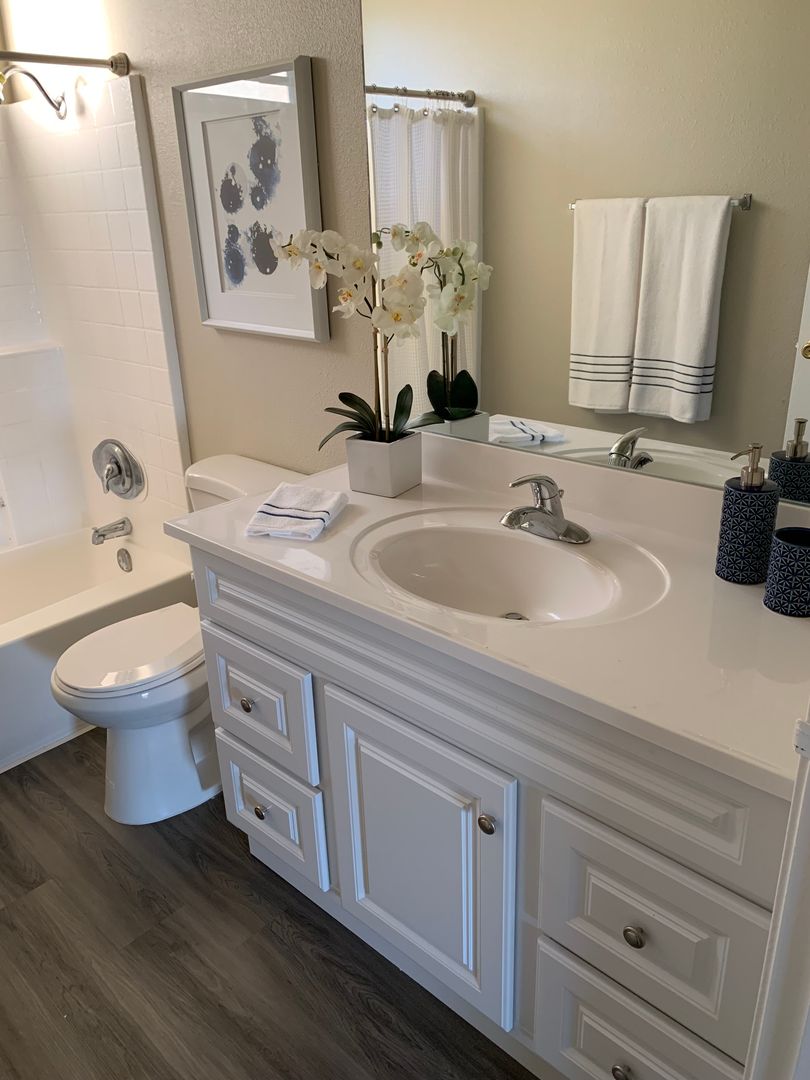 Welcome to our upgraded 1 bedroom, 1 bathroom apartment with a private balcony in beautiful Bonsall, CA. This pet-friendly unit features a private balcony, perfect for enjoying your morning coffee or evening sunset. Stay comfortable year-round with ceiling fans and an A/C unit. Take advantage of the convenience of onsite laundry facilities and the option to rent a garage for additional storage. Don't miss out on this rare opportunity to enjoy a private balcony overlooking the beautiful rolling hills and breathtaking sunsets in a peaceful setting. Contact our on-site manager, Tenesha, today to schedule a tour of your new home!
