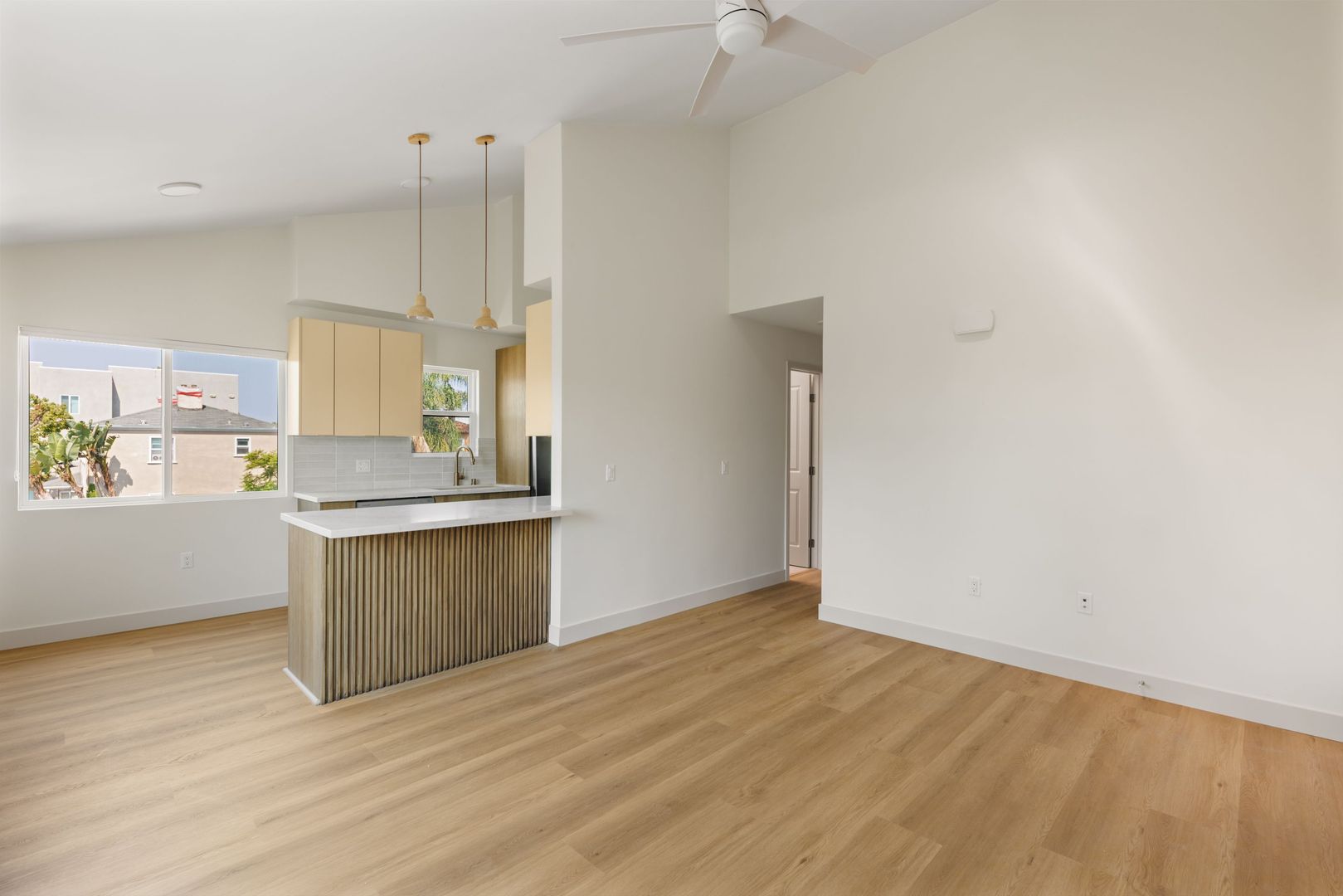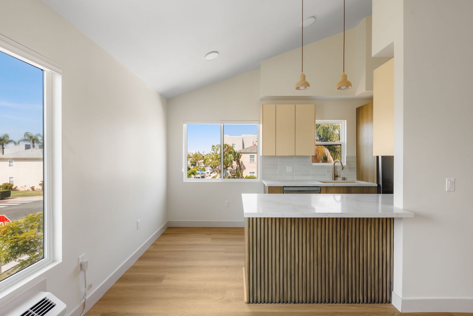 - Wide open kitchen / living layout