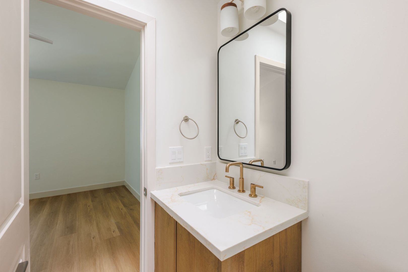 - Luxury designer finishes: vinyl plank flooring, full flooring and wall sound proofing, quartz countertops, designer slab cabinets, tile backsplash, stainless steel appliances including dishwasher and microwave, tile surrounded showers and floor in bathrooms, dual pane windows